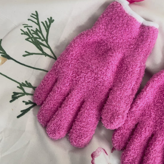 I have really sensitive skin and most cleansers make me break out. These gloves are super gentle and don’t irritate me at all. Easy to wash and dry, and they look cute hanging in my bathroom. Highly recommend! – Amara L